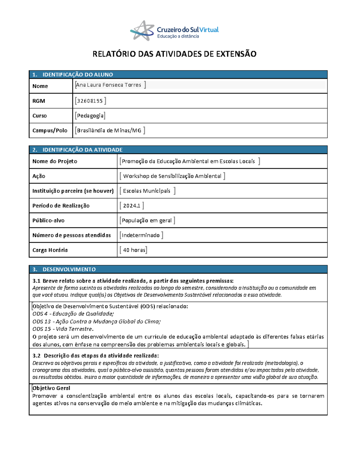 Nome Completo: Ana Graziele de Franca Sales RGM: 31416152 Universidade: Cruzeiro do Sul Data de entrega: 22/09/2022 Curso: Pedagogia Disciplina:AtividadedeExtensão–IntegraçãodecompetênciasparatransformaroEu,ooutro easociedade.