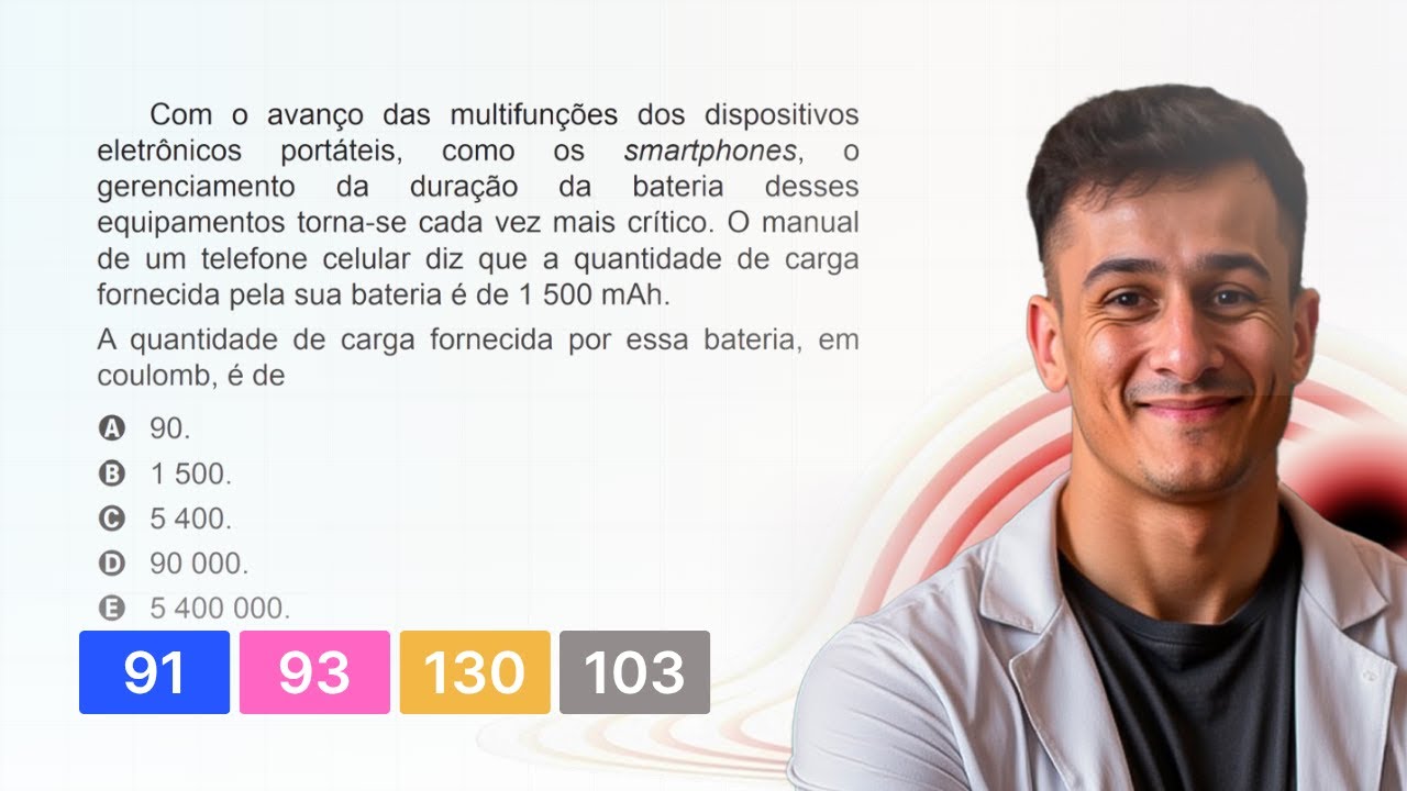 (Enem 2018)Comoavançodasmultifunçõesdosdispositivoseletrônicosportáteis,comoossmartphones,ogerenciamentodaduraçãodabateria desses equipamentos torna-se cada vez mais crítico.