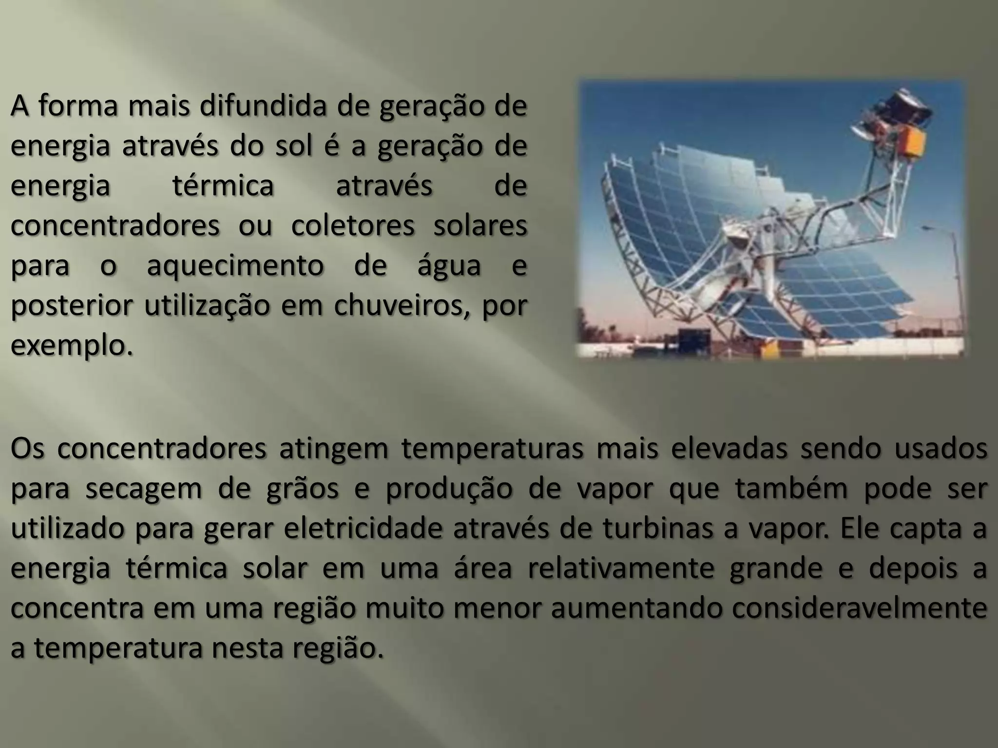 Resposta: O calor existente nas camadas subterrâneas da Terrapodeserusado para gerar energia elétrica, especialmente nos locais comatividadevulcânicaintensa. Chamada de energia geotérmica, esta modalidade vem ganhando escala em todo o mundo.