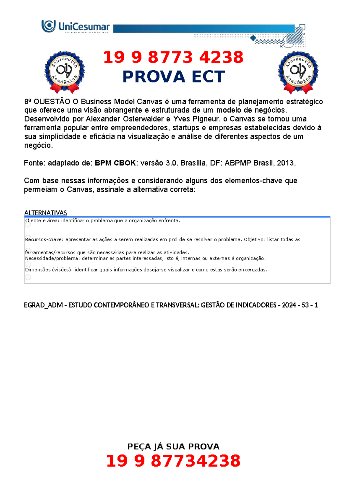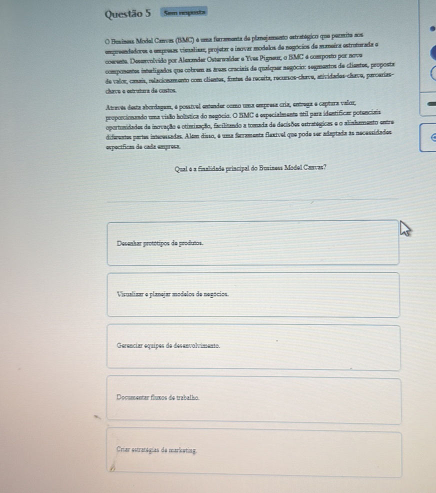 8ª Questão O Business Model Canvas é uma ferramenta de planejamento