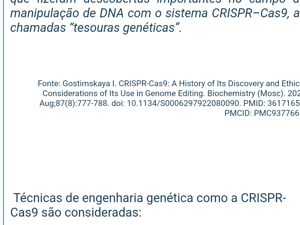 Técnicas De Engenharia Genética Como A Crispr-cas9 São Consideradas: